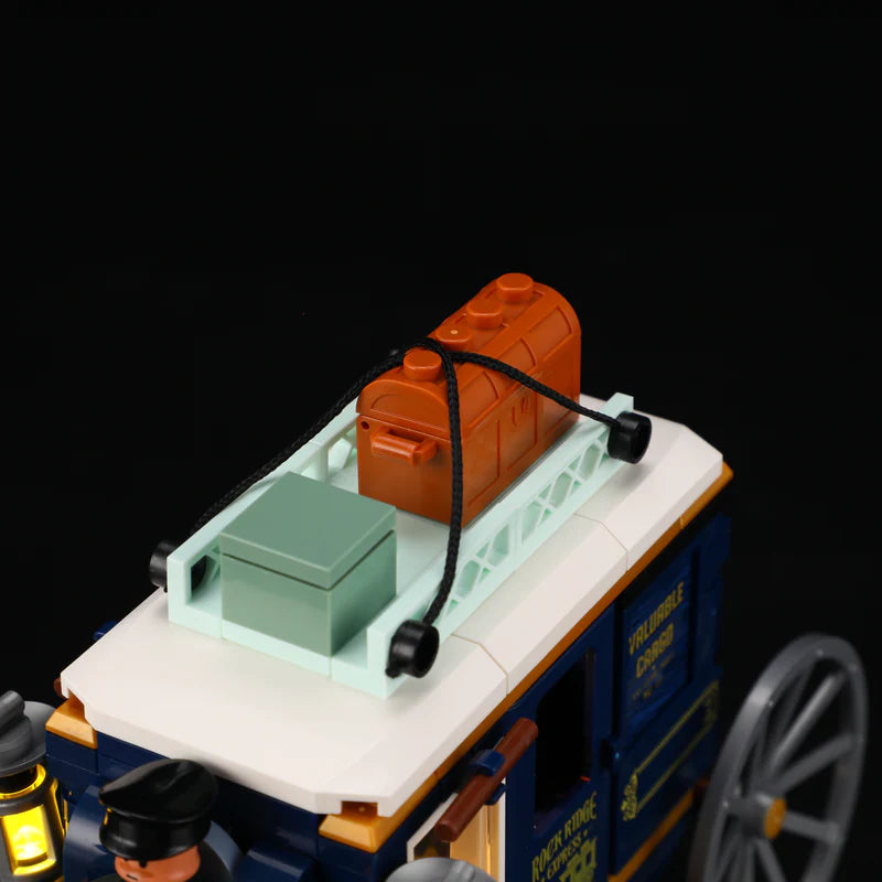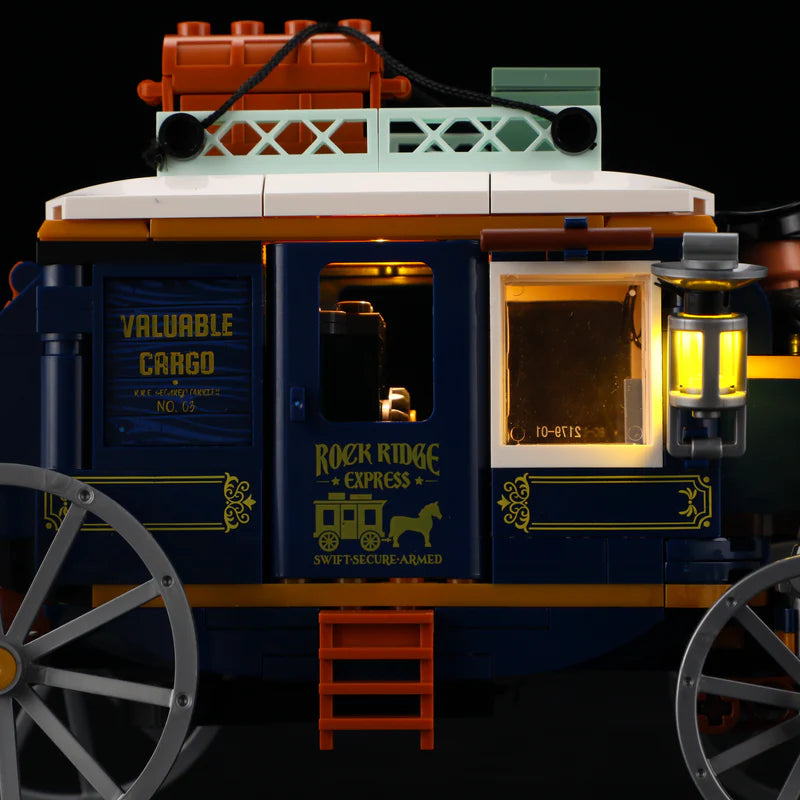 【Unique lighting effects】This set has a total of three lighting effects—one inside the carriage and two on the exterior of the body—to realistically recreate the scene of a western stagecoach transporting goods at night.