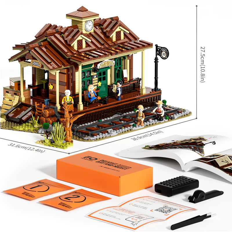【Lighting design that fits The Old West theme】The Western Freight Train features 10 light points, 4 light bars and 1 portable battery box. Warm yellow light setup fits the old west era background.